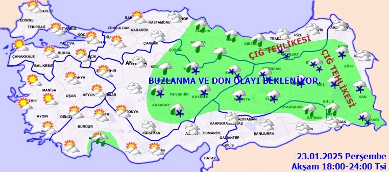 Güneşe aldanmayın haritaya yansıdı: Kar, buzlanma, çığ alarmı! Meteoroloji 23 Ocak Perşembe hava durumu