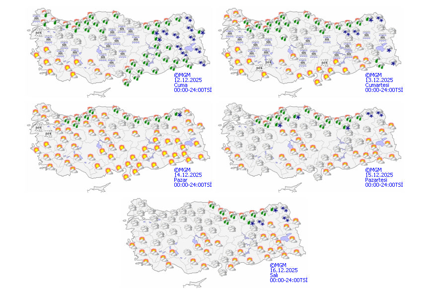 Meteoroloji Genel Müdürlüğü (MGM), yeni hava tahmin raporunu yayımladı, ülke genelinde etkili olacak yağış ve sıcaklık dağılımını paylaştı. Kuzey, iç ve doğu kesimlerde bulutluluk artarken bazı şehirlerde yağmur, yüksek kesimlerde ise karla karışık yağmur ve kar yağışı bekleniyor. İç bölgelerde sabah saatlerinde sis ve pusun ulaşımı olumsuz etkileyebileceği vurgulanıyor.
