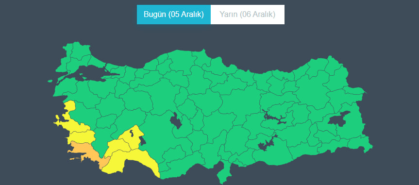 AKOM, fırtına ve güçlü yağış nedeniyle çatı uçması, ağaç ve direk devrilmesi, su baskını ve yollarda göllenme gibi olumsuzluklara karşı dikkatli olunması gerektiğini bildirdi.