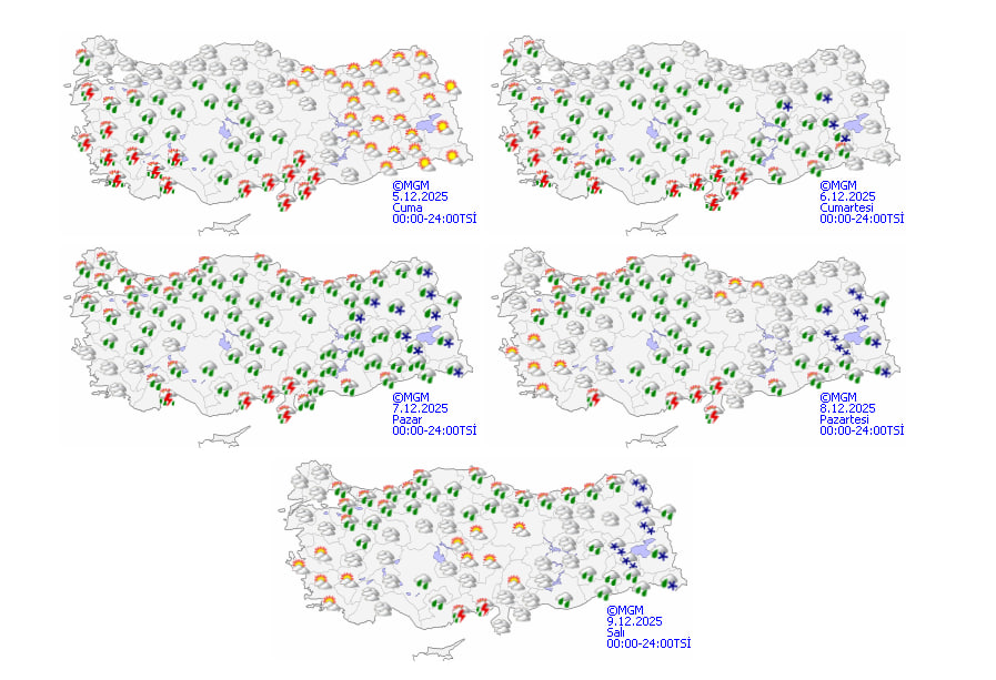 Türkiye yeni bir yağış dalgasının etkisine giriyor. Birçok bölgede kuvvetli ve yer yer şiddetli yağış beklediğini belirtilirken meteoroloji, 65 ilde sağanak yağışlar beklenirken 8 il için de sarı ve turuncu kodlu uyarı yapıldı. Bazı bölgelerde alarm seviyeleri yükseldiği, bazı bölgelerde ise kar, diğer bölgelerde sağanak geçişleri etkili olacak. Peki hafta sonu hava nasıl olacak? 5 günlük harita yayımlandı. Meteoroloji mühendisi Adil Tek A Haber canlı yayınında değerlendirmelerde bulundu. İşte bölge bölge hava durumu detayları…