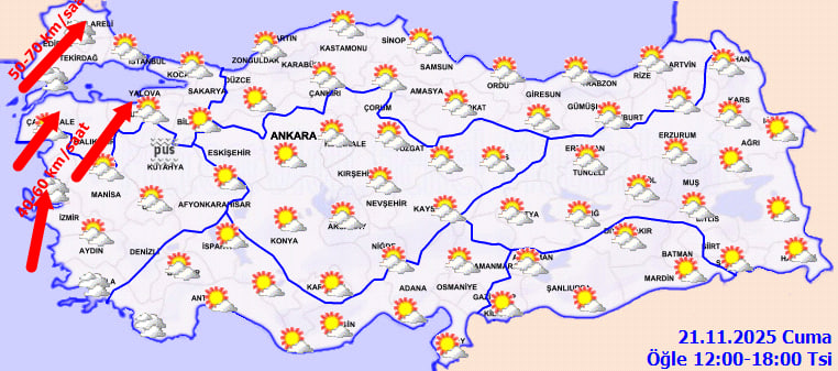 MGM'nin son tahminlerine göre, ülkenin genelinde parçalı ve yer yer çok bulutlu bir hava hakim. Hava sıcaklıkları mevsim normallerinin üzerinde seyrederken bazı bölgelerde fırtınanın etkisini artırması bekleniyor. Hafta sonu için plan yapanların özellikle sağanak yağış ihtimaline karşı dikkatli olması öneriliyor. İşte 21 Kasım bölge bazlı hava durumu detayları…