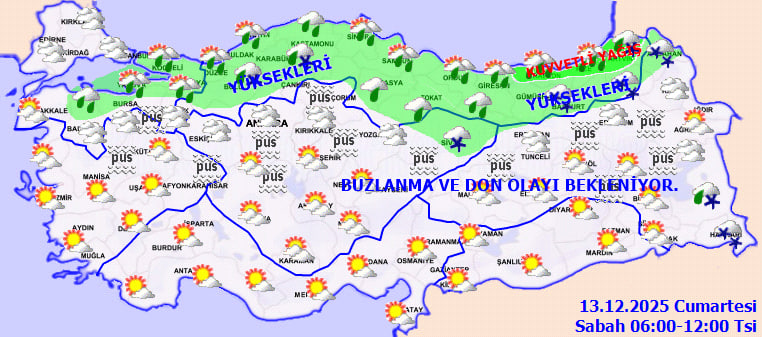 Meteoroloji Genel Müdürlüğü tarafından yayımlanan son hava tahmin raporuna göre, Türkiye'nin kuzey, iç ve doğu kesimlerinde hava koşulları yer yer zorlayıcı olacak. Bazı bölgelerde kuvvetli yağış ve rüzgar beklenirken, iç ve yüksek kesimlerde karla karışık yağmur, buzlanma ve don riski öne çıkıyor.