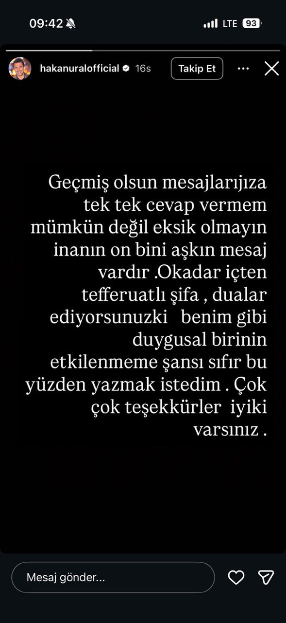 "Toparlanma sürecine girdim hayırlısıyla. En geç pazartesi birlikteyiz. Geçmiş olsun mesajlarınız, ilgi ve alakanız için çok teşekkür ederim. Selam, sevgi, saygılar."