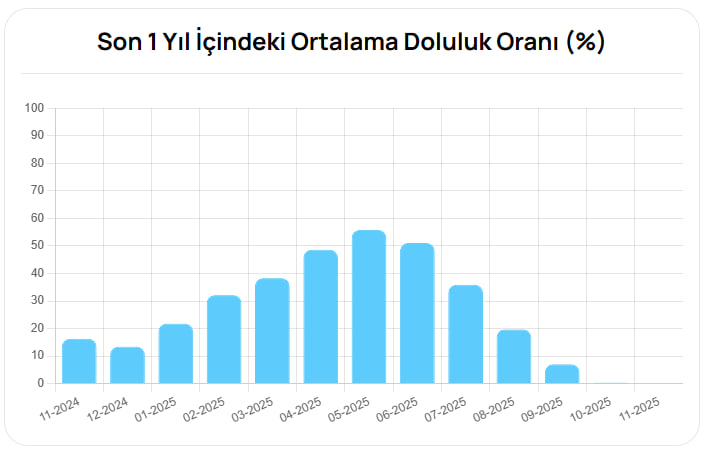Son bir yıl içinde ay sonlarında yapılan ölçümlerde baraj doluluk oranlarında dikkat çekici dalgalanmalar yaşandı. Tabloya göre en yüksek seviye nisan ayında yüzde 81,23'e ulaşırken, en düşük oran ise şu an için kasım ayında yüzde 22,09 olarak kaydedildi.
