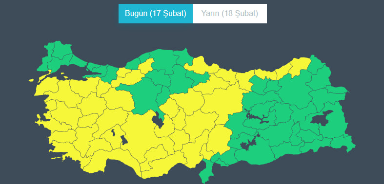 MGM, 39 il için sarı kodlu uyarı yayımladı. Marmara ve kıyılarda kuvvetli sağanak, iç kesimlerde fırtına, Doğu Anadolu'da kar ve buzlanma bekleniyor. İşte bölge bölge hava durumu detayları…