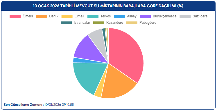 Kent genelinde barajlardaki su seviyelerinde farklılıklar yaşandı. Bazı barajlarda düşüş eğilimi, bazılarında ise artış kaydedildi. İSKİ'nin yayımladığı güncel rapora göre İstanbul'daki barajların doluluk oranları şu şekilde listelendi: