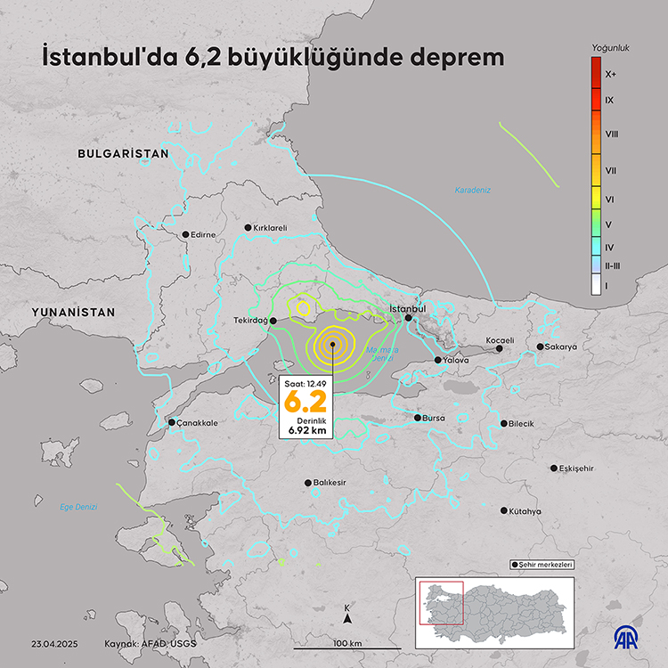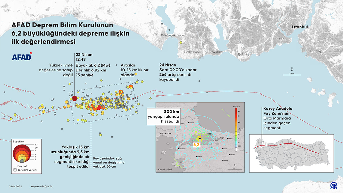 İstanbul'da dün (23 Nisan Çarşamba) saat 12.49'da merkez üssü Silivri olan 6.2 büyüklüğünde bir deprem meydana geldi.