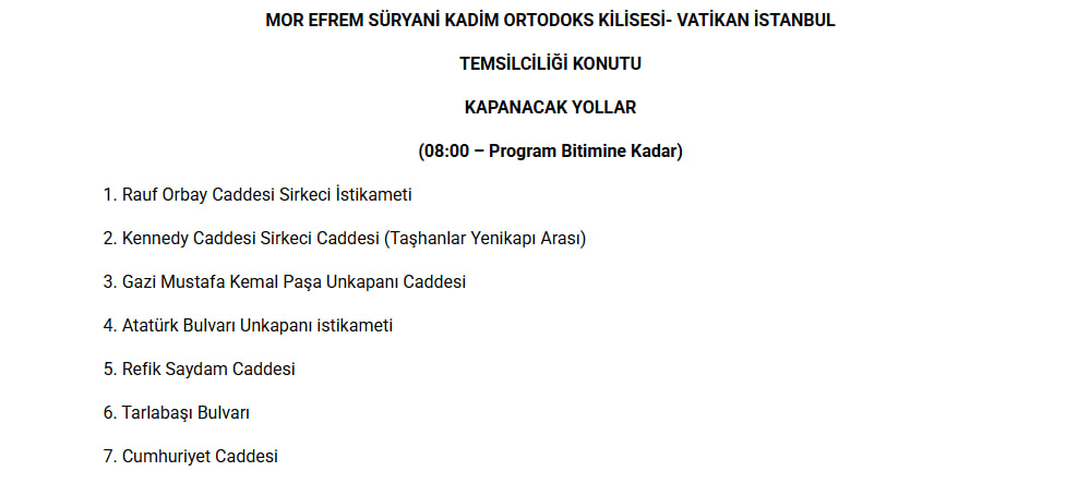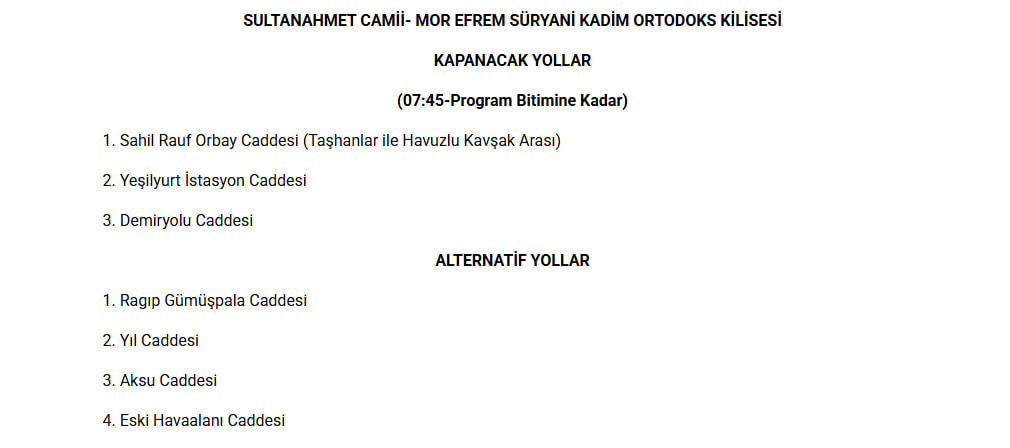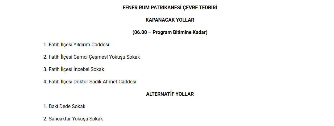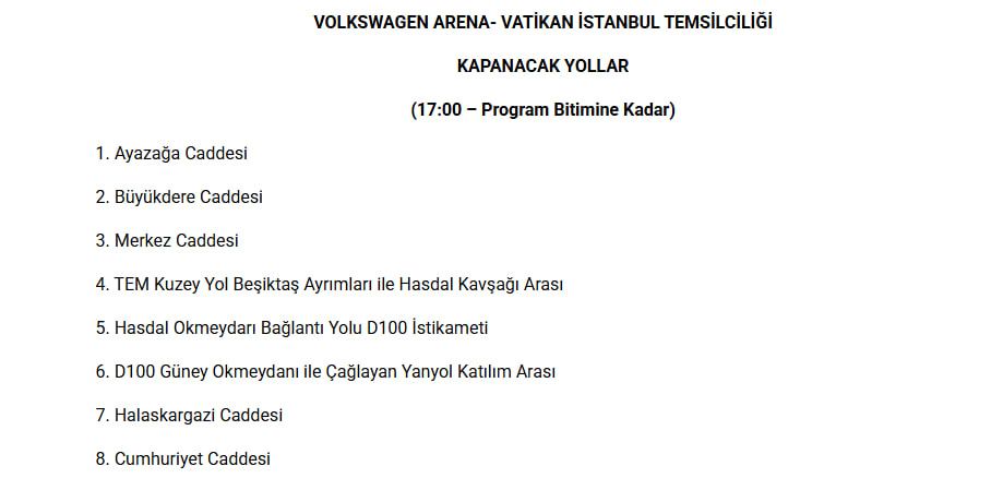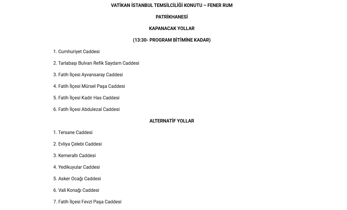 Papa 14. Leo'nun Türkiye temasları bugün İstanbul'da devam edecek. Ziyaret kapsamında kentte bazı yollar geçici olarak trafiğe kapatılacak. Peki hangi güzergahlarda ulaşım sağlanamayacak? Sürücüler için önerilen alternatif rotalar neler?