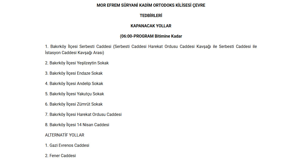MOR EFREM SÜRYANİ KADİM ORTODOKS KİLİSESİ ÇEVRE TEDBİRLERİ