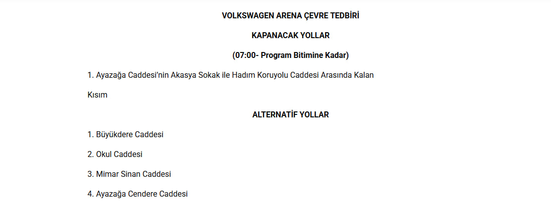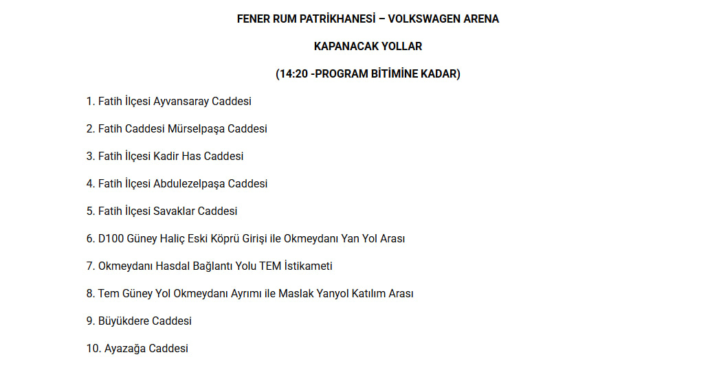 07:00 ile Program Bitimine Kadar Kapanacak Yollar