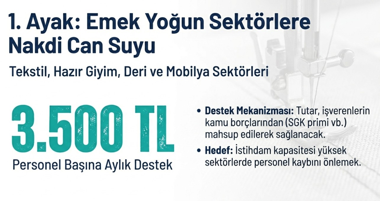 Söz konusu destek, işverenlerin kamu borçlarına mahsup edilecek. Böylece firmalara doğrudan nakit akışını rahatlatacak bir katkı sağlanması hedefleniyor.