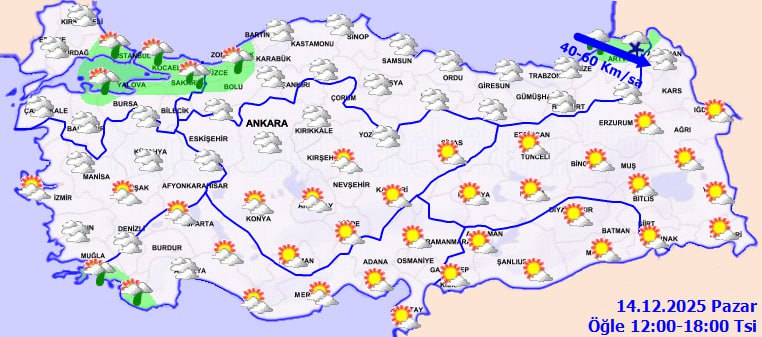 Yapılan değerlendirmelere göre Marmara'nın doğusu, Batı ve Orta Karadeniz, Doğu Karadeniz kıyıları ile Muğla'nın güney kesimleri, Yozgat'ın doğusu, Antalya ve Sivas'ın batı ilçelerinde yağış görülecek. Yağışların büyük bölümünün yağmur ve sağanak şeklinde olması beklenirken, Karadeniz'in iç kesimleri ile Ardahan çevrelerinde karla karışık yağmur ve kar yağışı tahmin ediliyor.