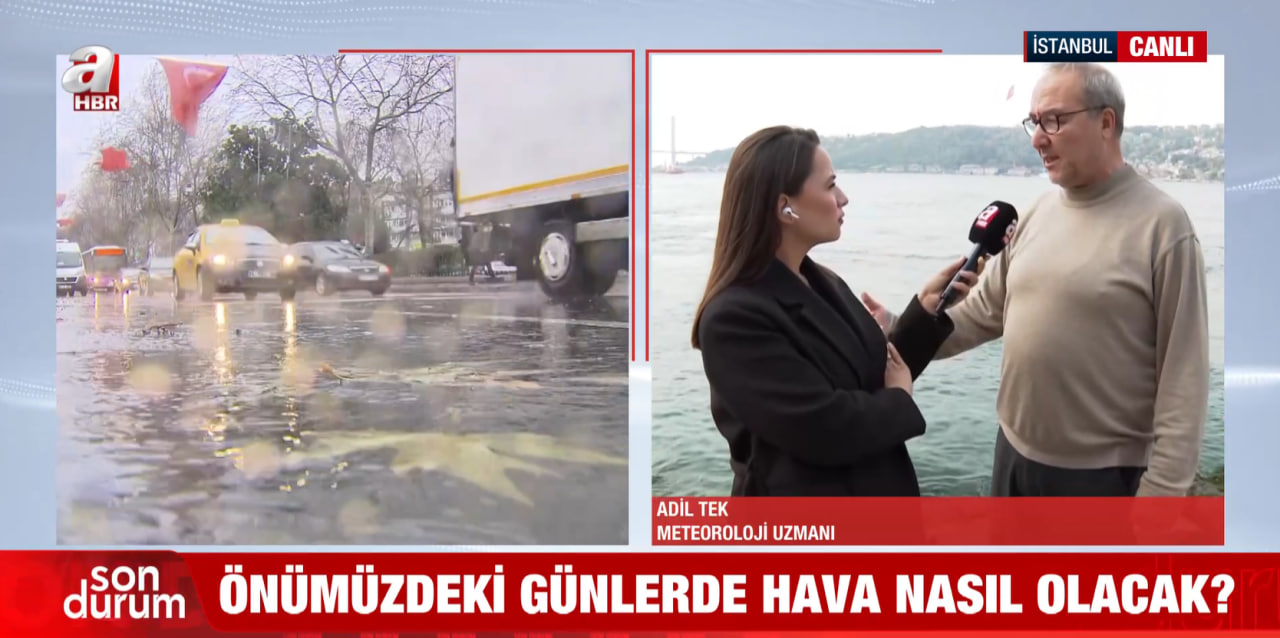 Meteoroloji Uzmanı Adil Tek, A Haber canlı yayınında İstanbul ve yurt genelindeki hava durumuna ilişkin değerlendirmelerde bulundu. Tek, hafta sonunun genel olarak sisli, puslu ve parçalı bulutlu geçeceğini belirterek, önümüzdeki hafta salı gününden itibaren yağışlı bir sistemin kente giriş yapacağını söyledi.