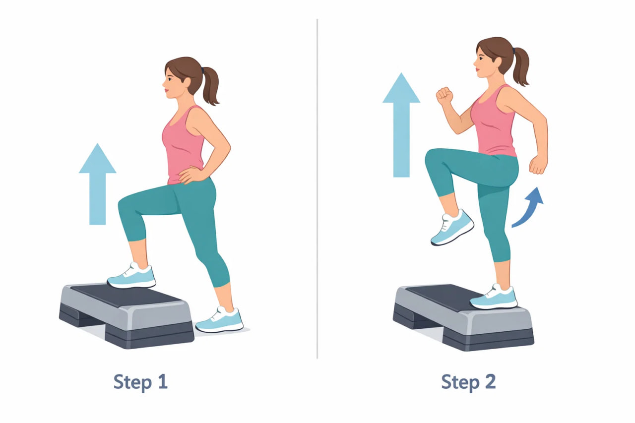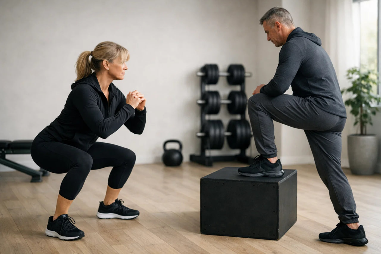 45 yaş sonrası kas kaybı riski artıyor. Günlük hareketleri kolaylaştıran fonksiyonel egzersizler kas gücü ve dengeyi birlikte destekliyor. Sıçrayarak squat, planktan şınava, yüksek diz adımı, sumo squat-ters hamle deadlift ve kalça menteşesiyle tam vücut çalışma hedefleniyor.