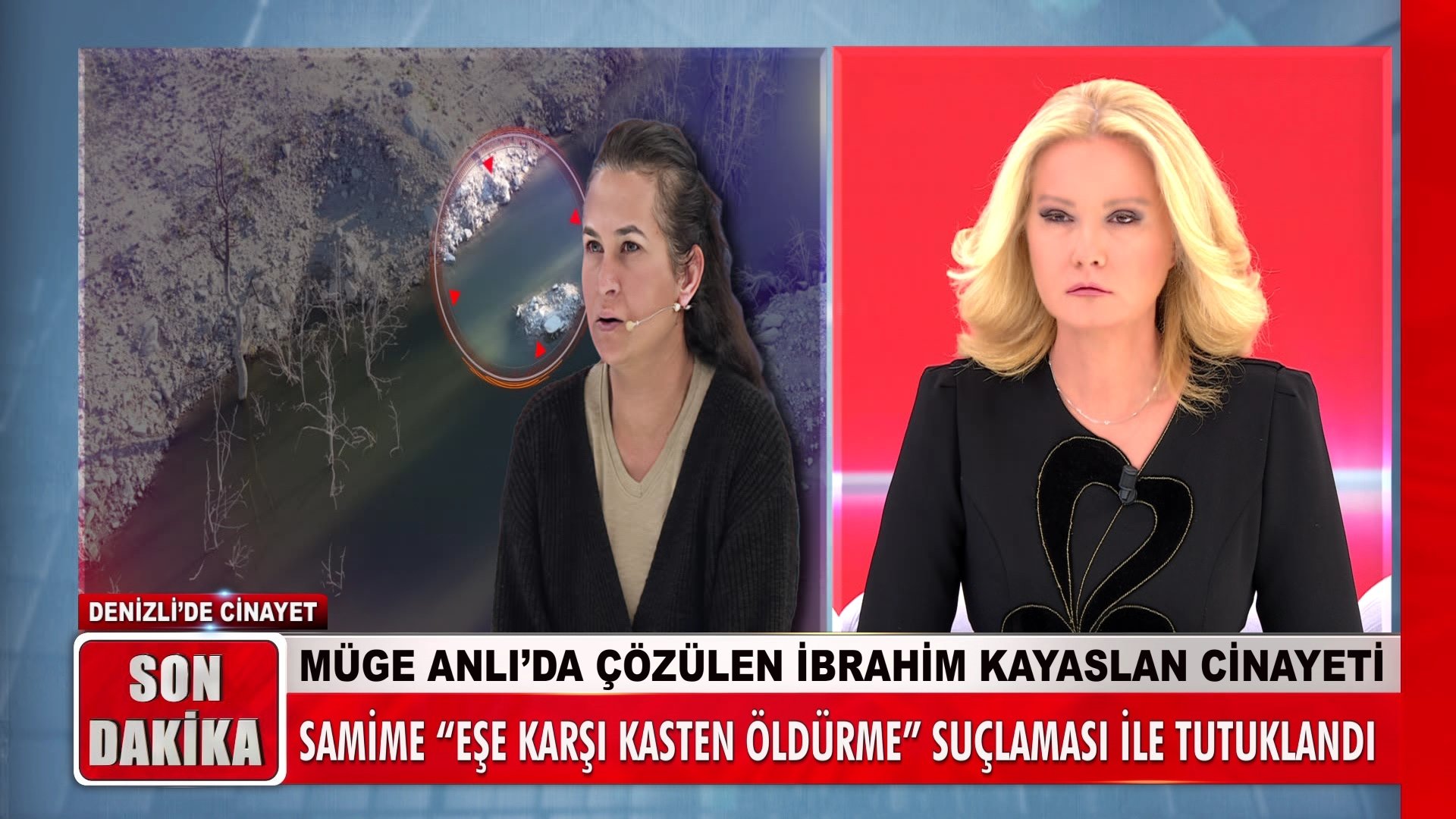 Denizli'de eşiyle birlikte gittiği Dımbazlar Göleti'nde boğularak hayatını kaybeden İbrahim Kayaslan'ın ölümünde sır perdesi aralandı. İlk etapta "kaza" olarak değerlendirilen olay, Müge Anlı'nın programında cinayet olarak aydınlatıldı. "Kasten adam öldürmek" suçundan tutuklanan Samime'nin eşinin içkisine ilaç koyup gölete attığı ortaya çıktı.
