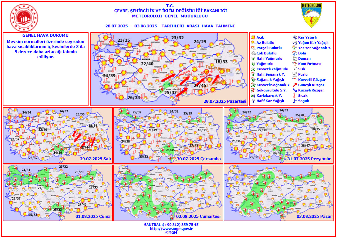 Özellikle Pazartesi ve Salı günleri iç, güney ve batı bölgelerde sıcaklık rekorlarının kırılması bekleniyor.