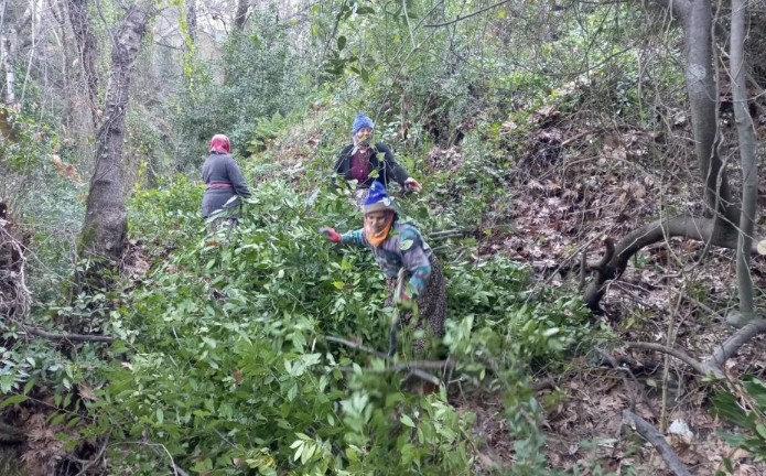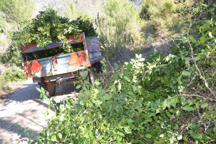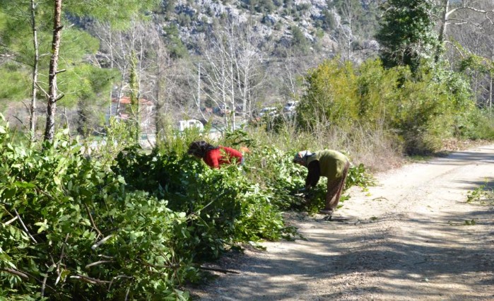 Akseki Orman İşletme Müdürlüğünden alınan izin ile yaklaşık 3 bin dönümlük arazideki ormanlık alanı 3'e bölüp köy sınırları içerisinde kendiliğinden doğal ortamda yetişen defne ağaçlarından 3 yılda bir hasat yapılıyor.