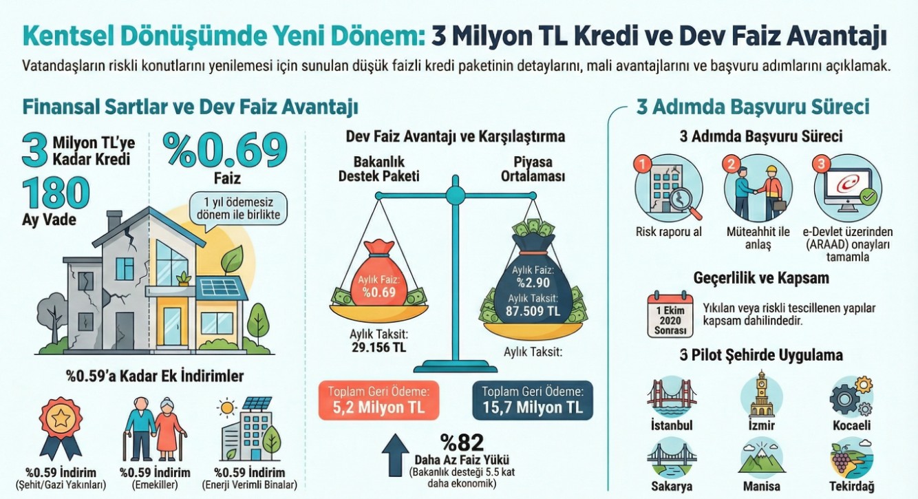Kentsel dönüşümde büyük fırsat: 0.69 faizle 3 milyon TL kredi kimlere verilecek?