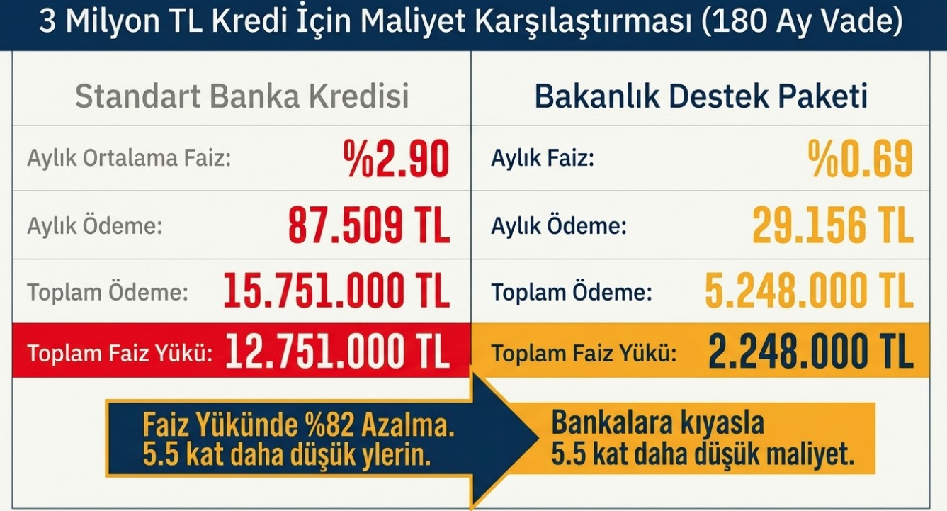 3 MİLYON LİRAYA KADAR KREDİ, 15 YIL VADE