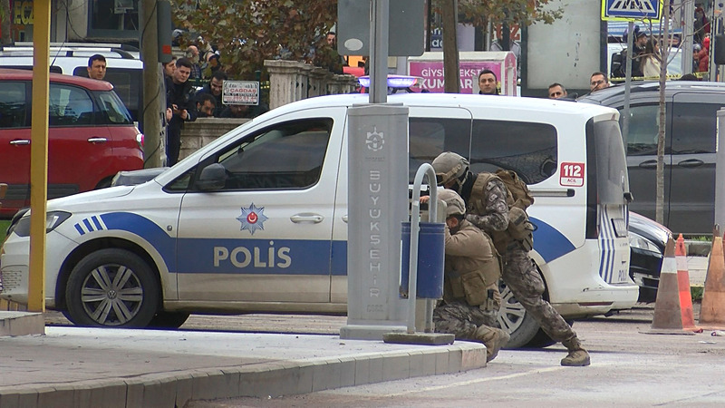Polis, güvenlik şeridi çekerek caddeyi araç trafiğe kapattı, yaya girişlerine izin vermedi. Elindeki bıçakla da kendini yaralayan Mucır, uzun süren müzekkere sonucu teslim olmadı.