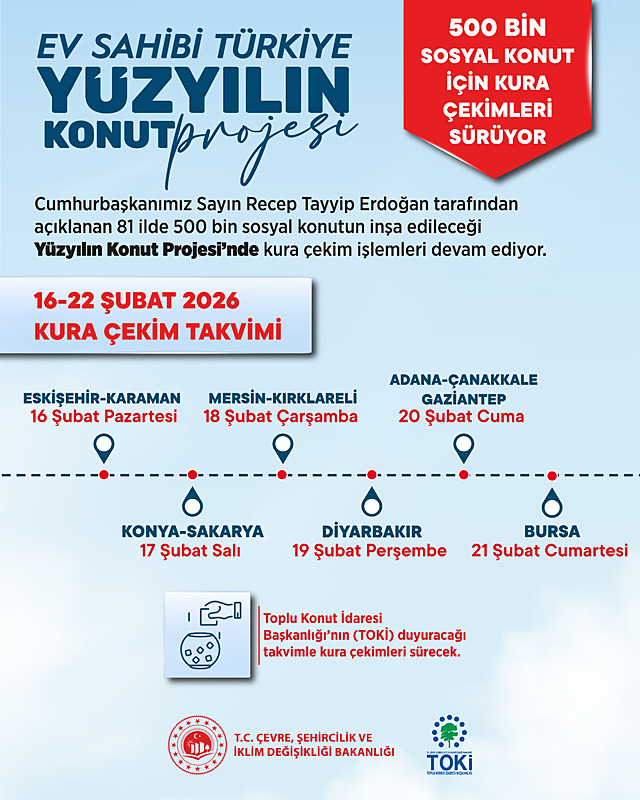 TOKİ'nin 500 bin sosyal konut projesinde Sakarya'nın ardından Konya'da da kura çekimi başladı. Toplam 22 bine yakın konut için hak sahipleri belirlenirken sonuçlar gün içinde e-Devlet ve TOKİ sitesi üzerinden yayımlanacak.