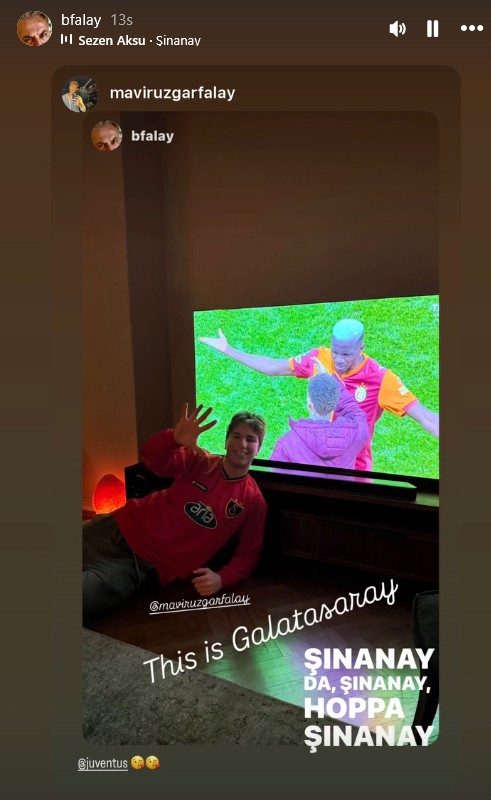 Sıkı bir Galatasaray taraftarı olduğu bilinen Barış Falay, dün akşam oynanan ve sarı-kırmızılı ekibin Juventus karşısında aldığı 5-2'lik galibiyeti oğluyla birlikte evlerinde kutladı.