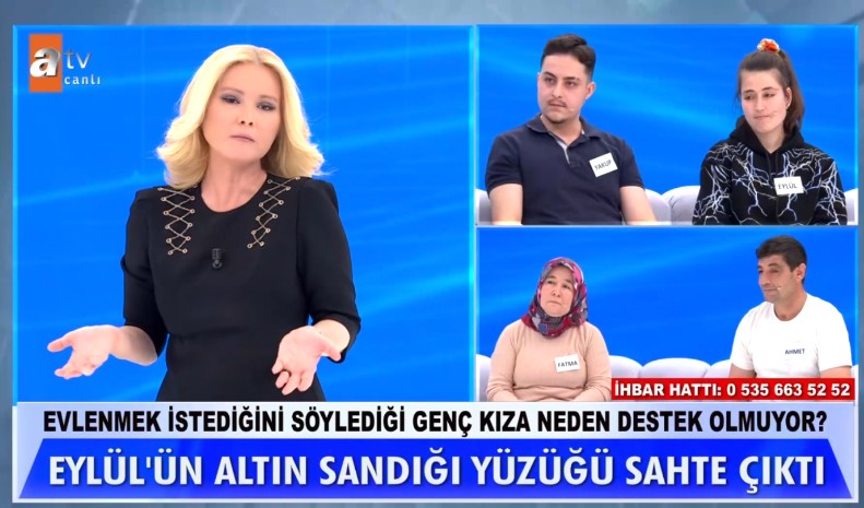 21 yaşındaki Eylül Zeybek'in, 44 yaşındaki Gökhan tarafından evlilik vaadiyle alıkonulduğu iddiası gündeme damga vurdu. Canlı yayında ailesiyle yüzleşen Eylül'ün yaşadıkları dikkat çekerken, Gökhan'ın aileye verdiği maddi zarar ve Eylül'ün parmağındaki altın sanılan yüzüğün sahte çıkması stüdyoda şok etkisi yarattı.