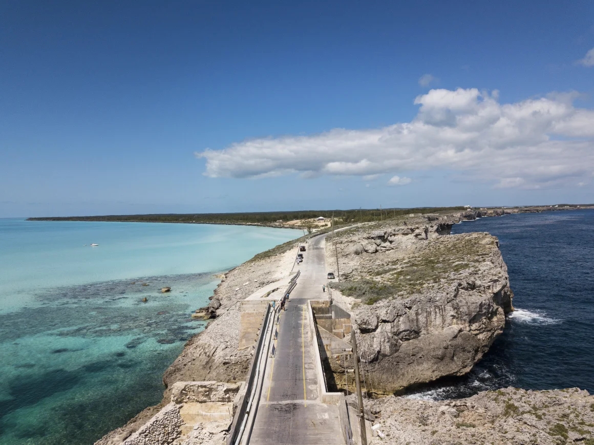 Diğer tarafta ise daha sığ ve sakin sularıyla turkuaz renkte parlayan Eleuthera Körfezi uzanıyor. Aynı noktada durup iki farklı denize bakmak mümkün. Manzara ilk bakışta iki ayrı dünyanın keskin bir çizgiyle ayrıldığı izlenimini veriyor.