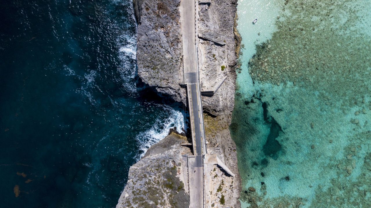 Bahamalar'daki Eleuthera Adası'nda yer alan Cam Pencere Köprüsü, bir yanında koyu lacivert Atlas Okyanusu'nu, diğer yanında turkuaz Eleuthera Körfezi'ni gösteren eşsiz bir manzara sunuyor. Sadece 10 metre genişliğindeki kaya şeridi iki deniz arasındaki renk farkını gözler önüne seriyor.