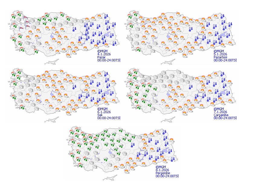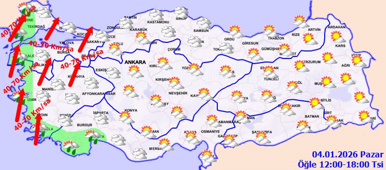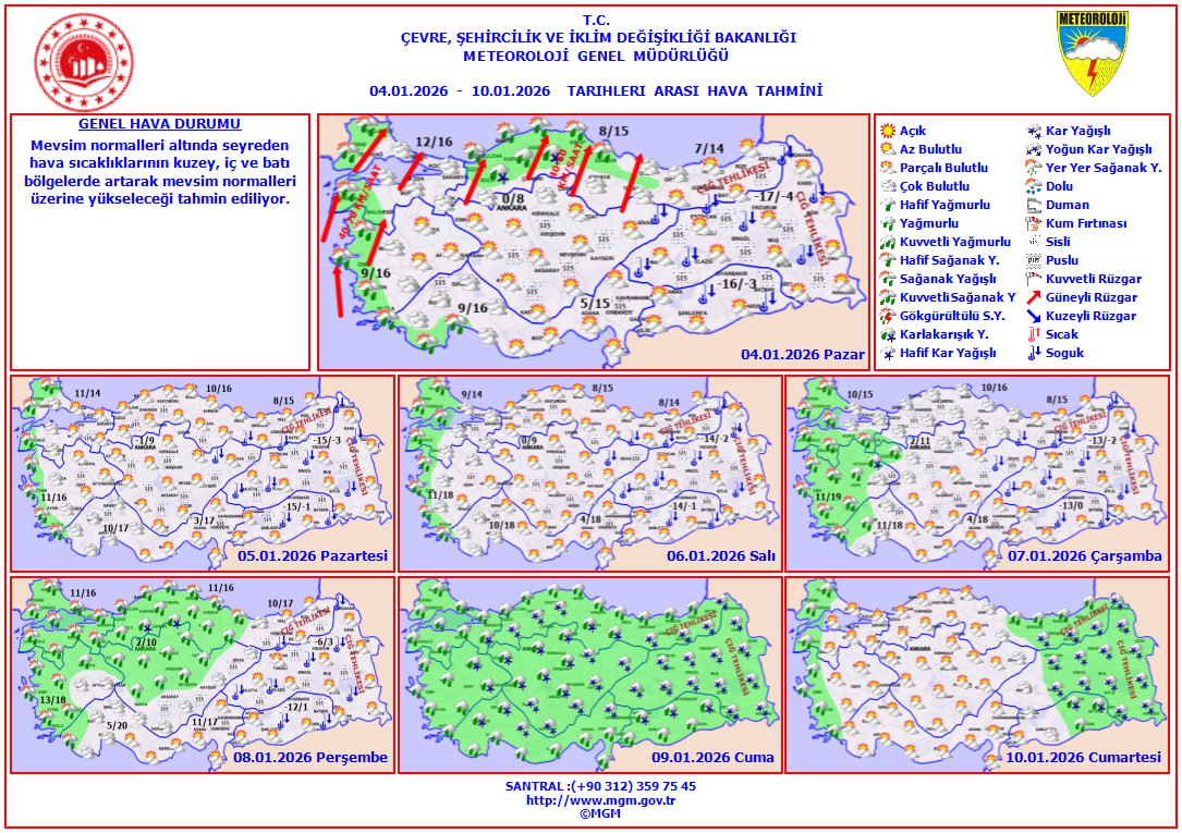 Mevsim normallerinin altında seyreden hava sıcaklıklarının, kuzey, iç ve batı bölgelerde artarak normallerin üzerine çıkması bekleniyor. Rüzgarın ise genellikle güneyli yönlerden, güneydoğu kesimlerde kuzeyli yönlerden hafif ve zaman zaman orta kuvvette eseceği tahmin ediliyor. Marmara, Ege ve Batı Karadeniz'de rüzgarın kuvvetli, yer yer kısa süreli fırtına şeklinde 40-70 km/s hızlara ulaşabileceği bildiriliyor.