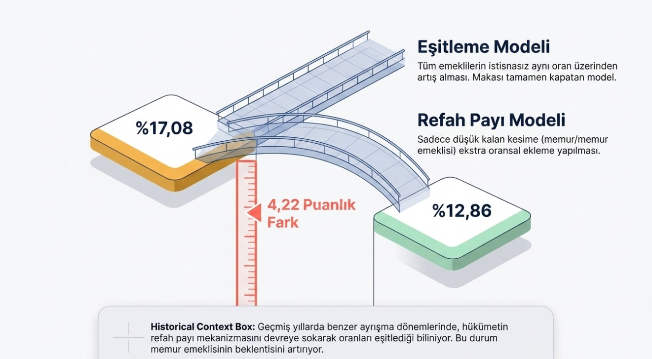 İki kesim arasındaki fark ise dikkat çekiyor. Takvim Gazetesi'nden Faruk Erdem'in haberine göre, oluşan 4,22 puanlık farkın, refah payı düzenlemesiyle giderilmesi ihtimali masada.