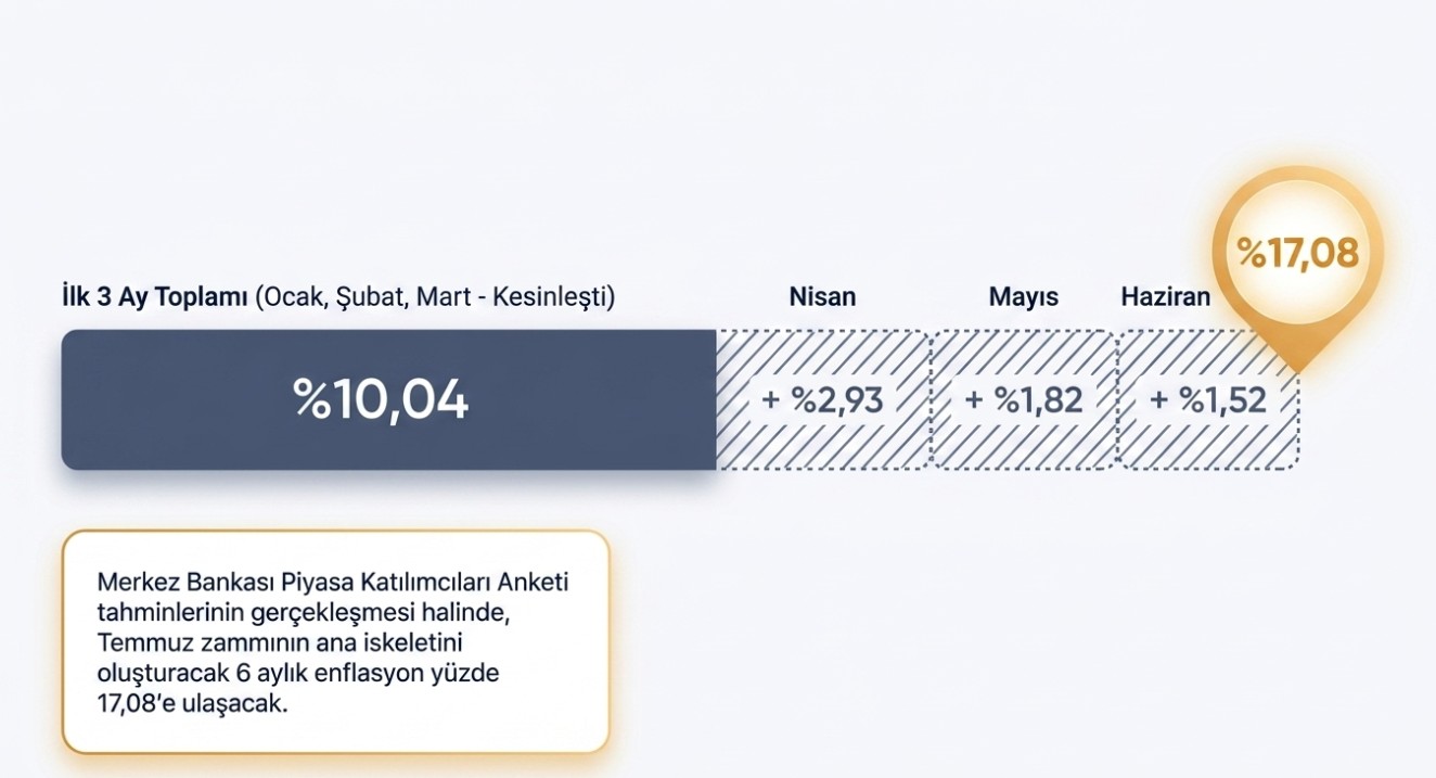 Yılın ilk üç ayına ilişkin enflasyon verisi yüzde 10,04 olarak gerçekleşti. Temmuz zammını belirleyecek olan 6 aylık tablo için şimdi Nisan, Mayıs ve Haziran ayı verileri bekleniyor.