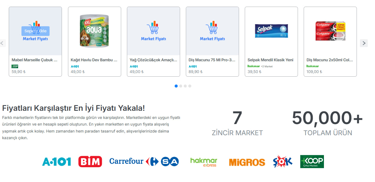 Bu marketlerin verileri TÜBİTAK BİLGEM sistemlerine aktarılarak, platformda anlık olarak güncelleniyor.
