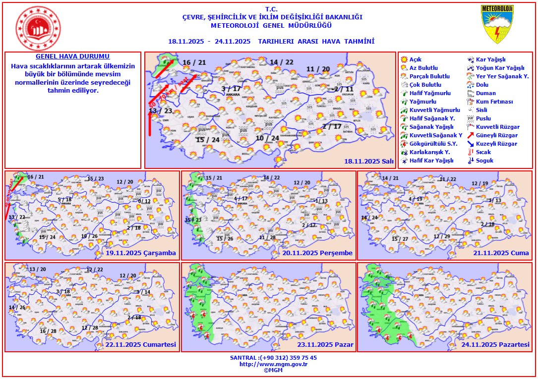 Meteoroloji'nin yeni tahminleri Türkiye'nin batısında baharı aratmazken Marmara ve Kuzey Ege'de fırtına riskinin güçlendiğini gösteriyor. İşte saat saat 18 Kasım hava durumu raporu...