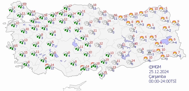 Meteoroloji Genel Müdürlüğü'nün son tahminlerine göre, Türkiye genelinde yağışlı hava hakimiyetini sürdürüyor.