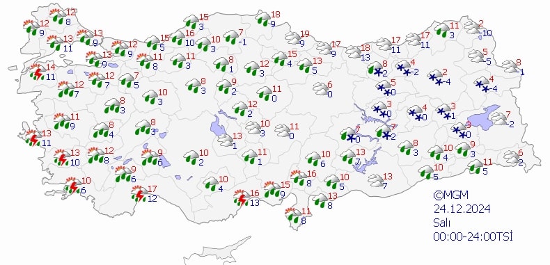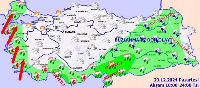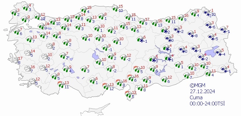 Özellikle batı bölgelerde kuvvetli yağışlar, doğu kesimlerde ise kar yağışı ve don olayları bekleniyor. Bölge bölge hava durumu detayları şu şekilde...