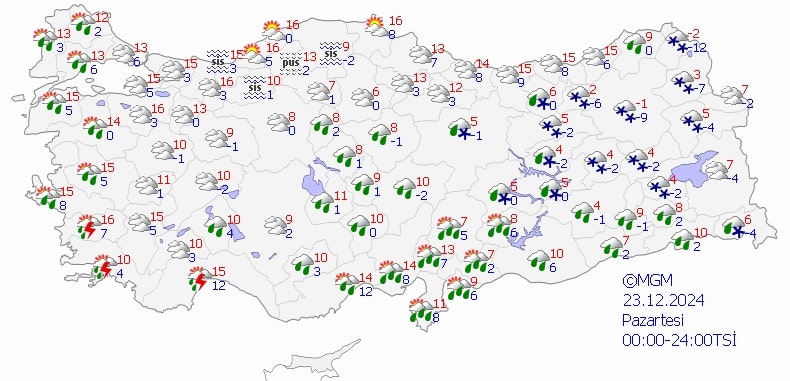 Yurdun iç ve doğu kesimlerinde buzlanma ve don olaylarıyla birlikte pus ve yer yer sis hadisesi bekleniyor. Bu durumun, özellikle sabah ve gece saatlerinde ulaşımı olumsuz etkileyebileceği belirtiliyor.