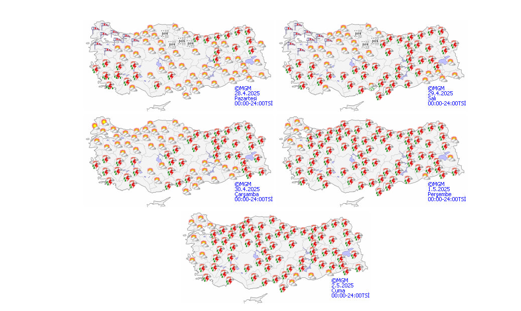 Meteoroloji Genel Müdürlüğü, yeni hafta öncesi hava durumu tahminlerini güncelledi. Yapılan açıklamaya göre yurdun büyük bir bölümünde parçalı ve çok bulutlu hava etkili olurken bazı bölgelerde sağanak ve gök gürültülü sağanak yağışlar bekleniyor.