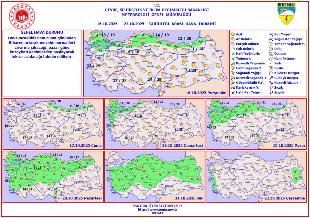 Şen, "Marmara, İç Anadolu, Ege ve Akdeniz bölgelerinde sıcaklıklar ortalamanın 2-3 derece üzerindeydi. Bu hafta değerler normale döndü. Cuma ve cumartesi günü Türkiye'de hava oldukça güzel. Adeta bahar havası yaşanacak. Ancak cumartesi günü Marmara'da, özellikle İstanbul'da gök gürültülü sağanak görülebilir. Pazar ve pazartesi günü sıcaklıklarda kısa süreli bir düşüş bekleniyor. Bu soğuma geçici olacak" ifadelerini kullandı.