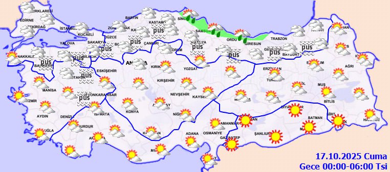 Meteoroloji Genel Müdürlüğü (MGM), yeni hava tahmin raporunu paylaştı. Türkiye'nin kuzey, iç ve batı kesimlerinde bulutlu bir gökyüzü beklenirken; Marmara'nın kuzeyi, Batı Karadeniz'in büyük bölümü, Orta ve Doğu Karadeniz kıyıları ile Artvin ve Bandırma çevrelerinde aralıklı yağmur ve sağanak yağış bekleniyor. Diğer bölgelerde ise güneş zaman zaman kendini gösterecek.