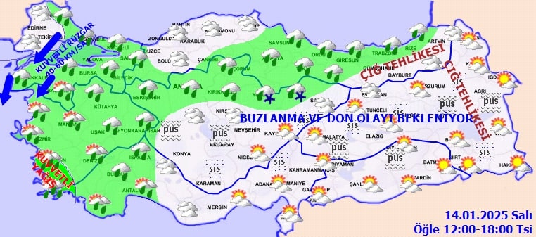 Yağışların genellikle yağmur ve sağanak şeklinde olacağı tahmin edilirken, Trakya bölgesi, Batı Karadeniz'in iç kesimleri, Yozgat, Gümüşhane ve gece saatlerinde Bursa'nın yüksek kesimlerinde karla karışık yağmur ve kar etkili olacak. Özellikle Kıyı Ege, Balıkesir'in batı ilçeleri ve Denizli çevrelerinde yağışların yer yer kuvvetli olması bekleniyor.