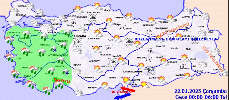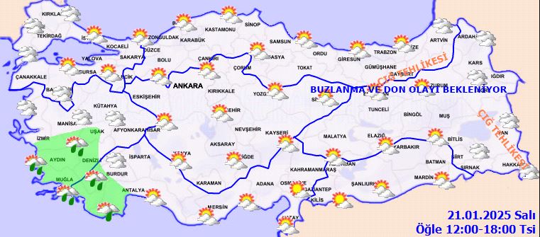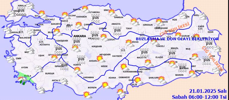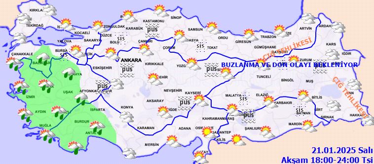 Doğu Anadolu ve Doğu Karadeniz'in iç kesimlerinde yüksek rakımlı dik yamaçlarda çığ tehlikesi bulunuyor. Ayrıca, ülkemizin iç ve doğu kesimlerinde buzlanma ve don olayının yanı sıra pus ve yer yer sis etkili olacak. Bu durum, özellikle ulaşımda aksamalara neden olabilir.
