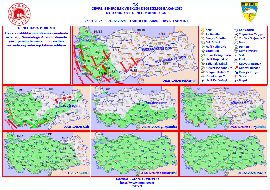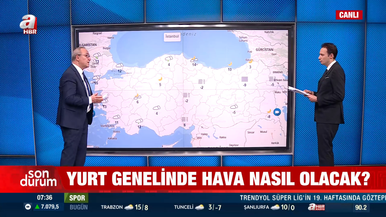 Adil Tek, günün ilk saatlerinde Türkiye genelinde yağış görülmediğini belirterek, batı bölgelerde çok bulutlu, doğu kesimlerde ise açık ve yer yer sisli bir havanın etkili olduğunu söyledi. İç Anadolu'nun kuzeydoğusu ile Güneydoğu Anadolu'da sisin yer yer etkisini sürdürdüğünü ifade eden Tek, akşam saatlerinden itibaren yeni bir yağışlı sistemin yurda giriş yapacağını vurguladı.