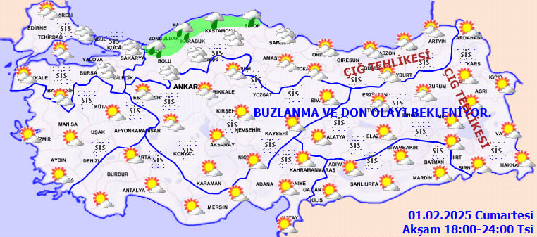 Ülkemizin iç ve doğu kesimlerinde sis, buzlanma ve don olayları bekleniyor. Marmara Bölgesi'nde ve iç kesimlerde yoğun sis nedeniyle görüş mesafesi azalabilir, bu durum sürücüler için tehlike oluşturabilir. Özellikle Doğu Karadeniz'in iç kesimleri ile Doğu Anadolu'nun yüksek ve dik yamaçlarında çığ tehlikesi bulunuyor. Vatandaşların dikkatli olması ve gerekli tedbirleri alması gerekiyor!
