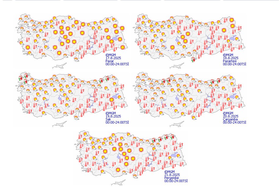 Çelik, hafta sonuna ilişkin yağış tahminlerini de paylaştı. Yağışların yalnızca Doğu Karadeniz'in iç kesimlerinde kısa süreli görüleceğini ifade eden Çelik, "Pazar günü Kırklareli ve Edirne çevrelerinde, ayrıca Osmaniye ile Hatay'ın kıyı bölgelerinde gök gürültülü sağanak geçişleri bekliyoruz. Bunun dışında yurdun büyük bölümünde hafta sonu için yağış öngörmüyoruz" dedi.