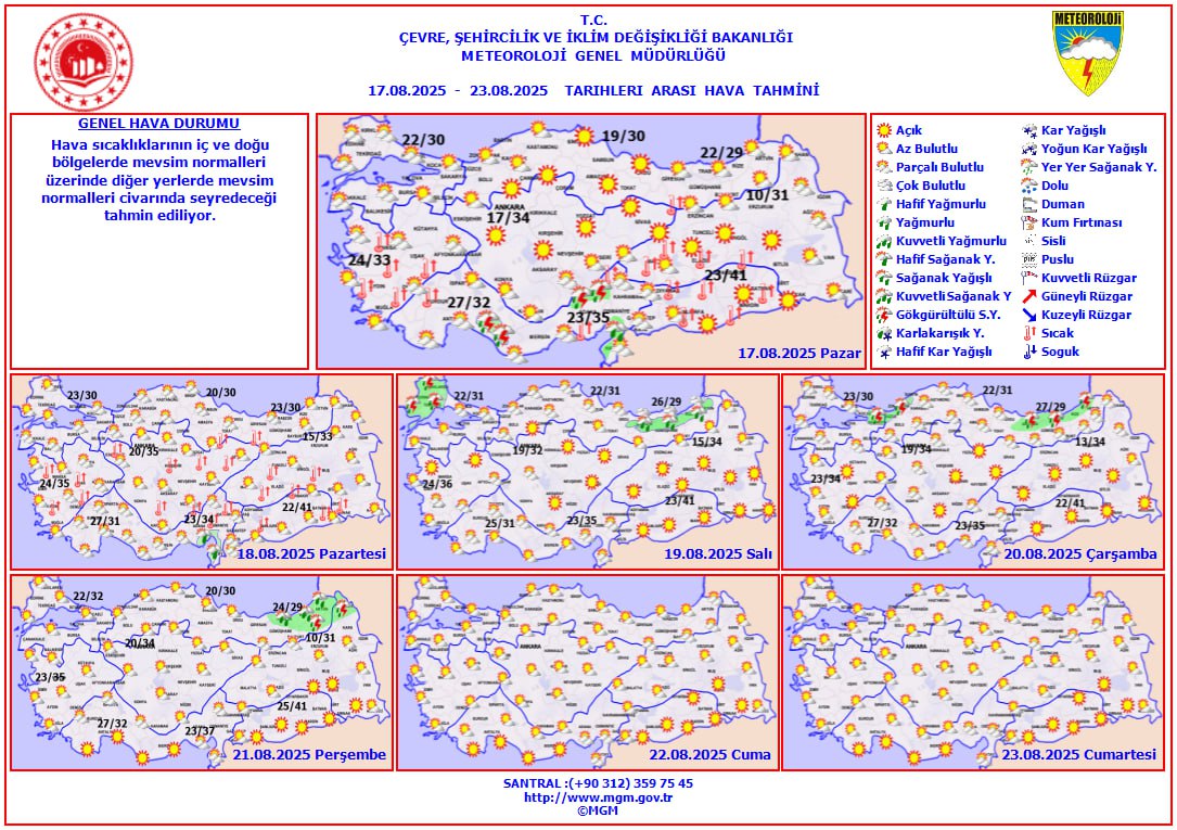 Hava sıcaklıklarının iç ve doğu kesimlerde mevsim normallerinin üzerinde seyretmesi bekleniyor. Batı bölgelerinde ise sıcaklıkların mevsim normalleri civarında kalacağı tahmin ediliyor.
