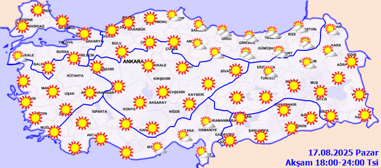 Meteoroloji Genel Müdürlüğü, yeni haftaya ilişkin hava durumu raporunu paylaştı. Tahminlere göre yurdun büyük bölümünde güneşli hava etkisini sürdürürken, bazı bölgelerde yerel sağanak yağışlar bekleniyor.