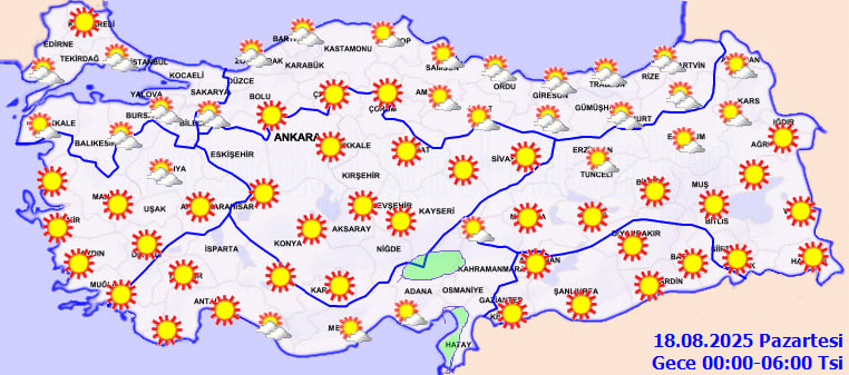 Rapora göre Marmara Bölgesi ile Doğu Akdeniz parçalı ve yer yer çok bulutlu olacak. Orta ve Doğu Akdeniz'in Toroslar kesimiyle Hatay kıyılarında ise yerel sağanak ve gök gürültülü sağanak yağış geçişleri görülecek. Yurdun diğer bölgelerinde az bulutlu ve açık bir hava hakim olacak.