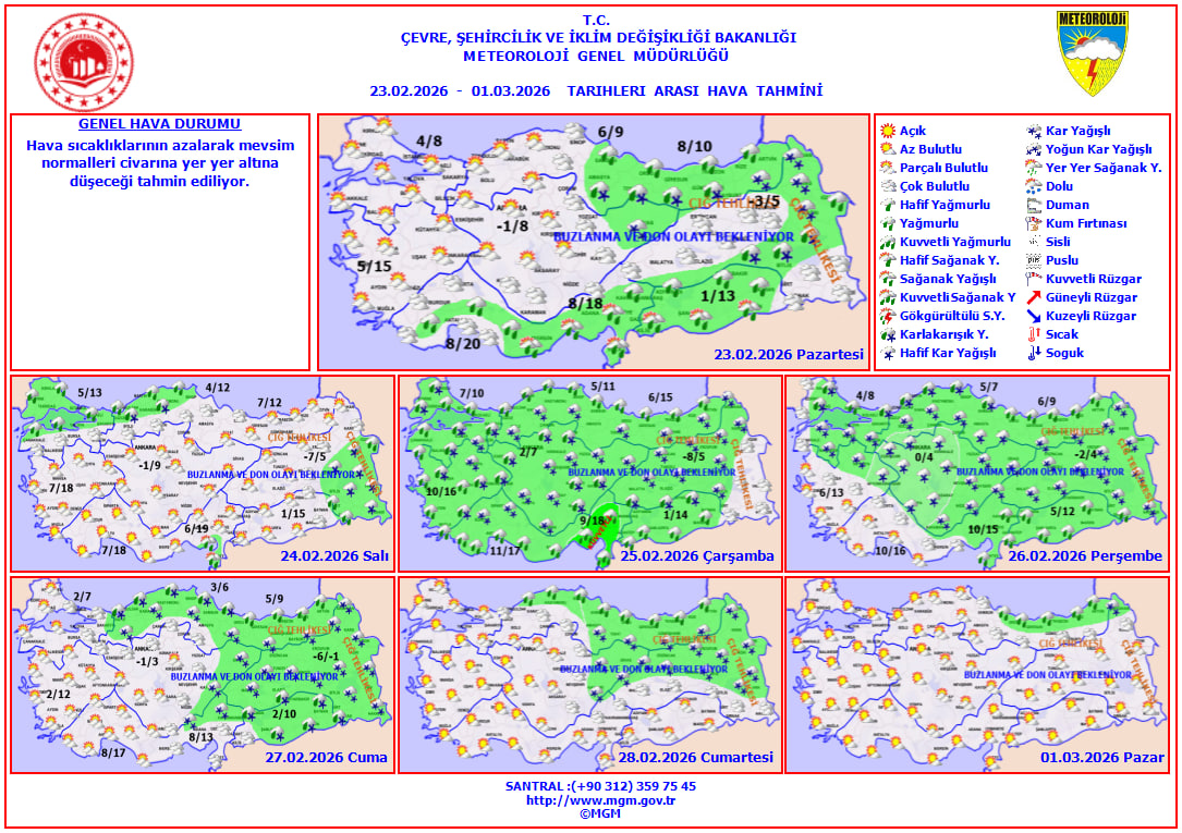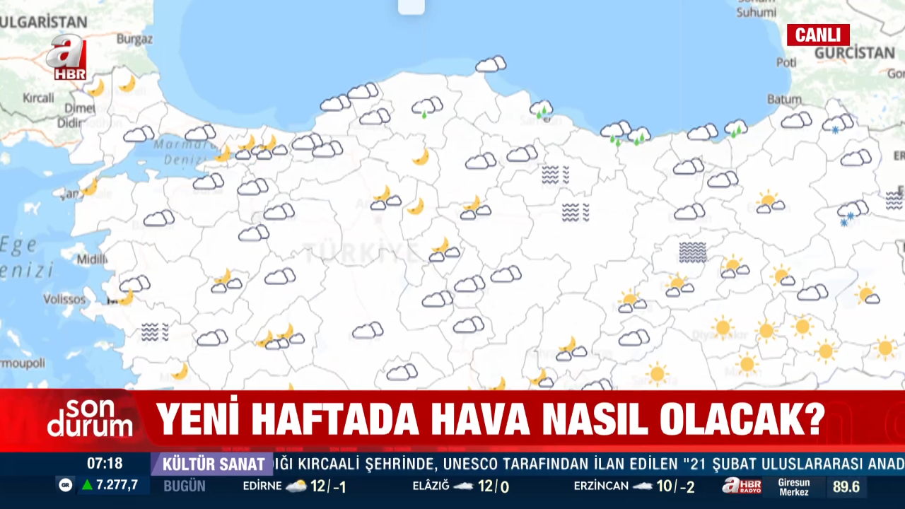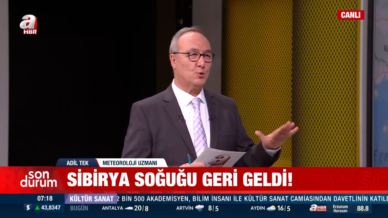 Meteoroloji Uzmanı Adil Tek, 23 Şubat Pazartesi günü A Haber canlı yayınında yaptığı değerlendirmede, bu haftanın özellikle çarşamba gününden itibaren yurt genelinde soğuk ve yağışlı geçeceğini açıkladı. Sibirya kaynaklı sistemin Marmara, Karadeniz ve İç Anadolu'da kar yağışını etkili kılacağını belirtti.