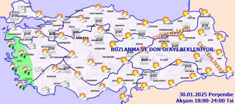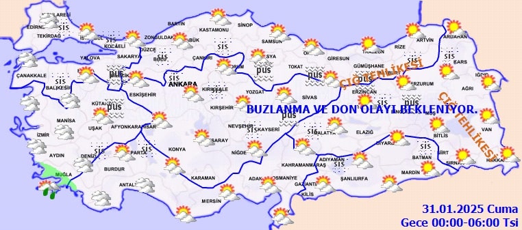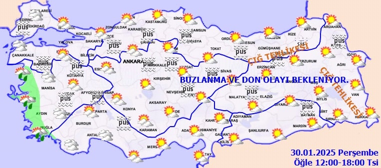 Buzlanma, Don ve Çığ Tehlikesi: Doğu Karadeniz'in iç kesimlerinin yüksekleri ile Doğu Anadolu'nun doğusundaki dik ve eğimli yamaçlarda çığ riski bulunuyor. Ayrıca iç ve doğu kesimlerde buzlanma ve don olayları bekleniyor. Ulaşımda aksamalara karşı önlem alınması öneriliyor.